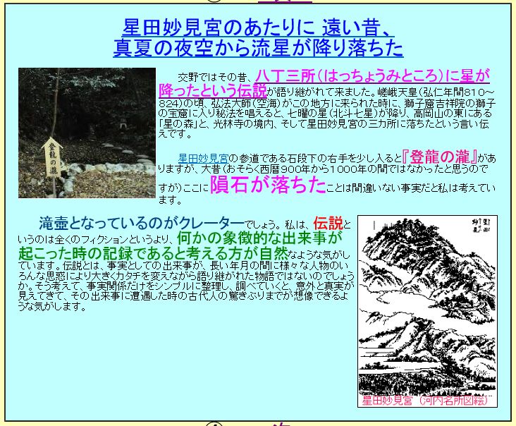 彗星捜索家 木内鶴彦氏が推理する クリック→ 「交野ヶ原の壮大な歴史ミステリー」 |
