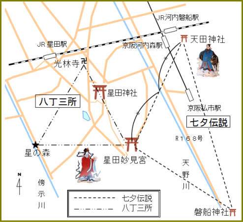 ちょうどこの頃、桓武天皇の寵愛を受けた百済王敬福が平野から交野ヶ原に移住して、一段と道教的文化が盛んになると、貴族たちは星宿に因んだ名称を地名につけ、こぞって歌に詠んだと伝えられています。