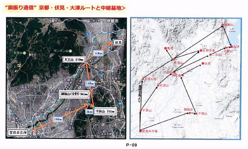 | 旗振り通信 京都・伏見・大津ルートと中継地点 | |