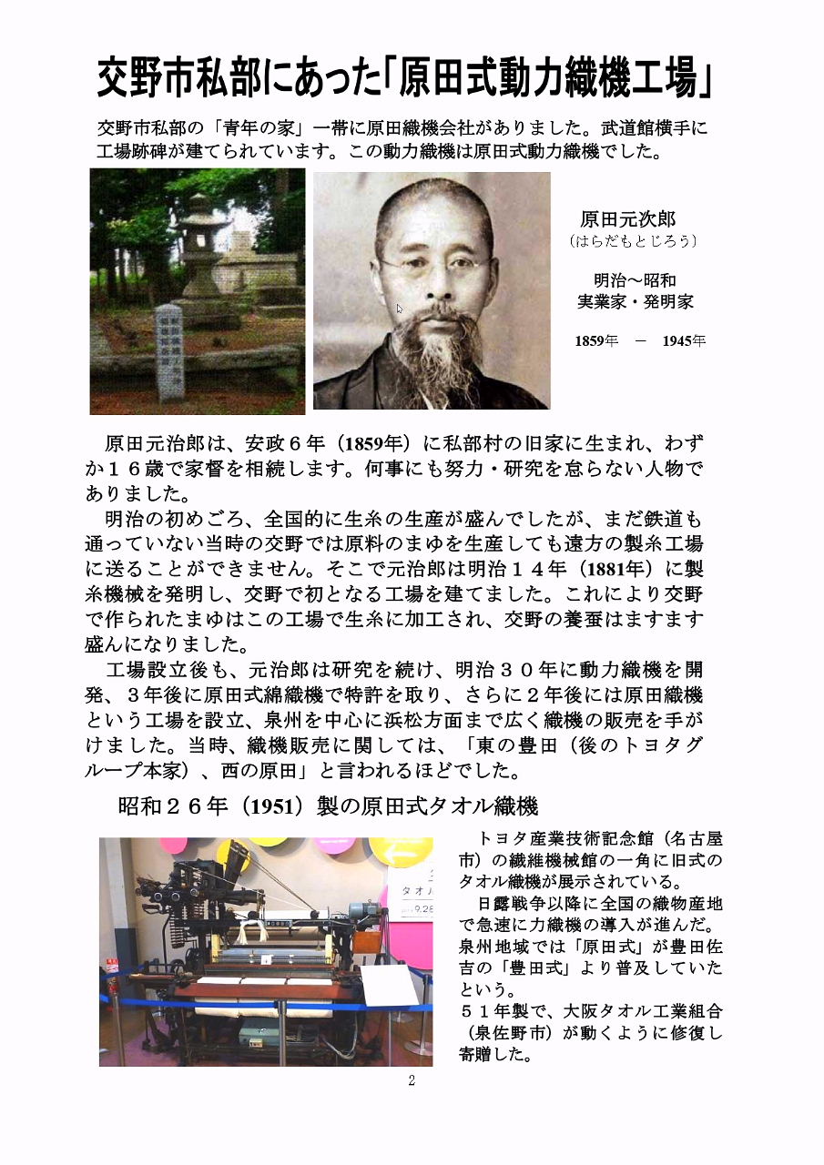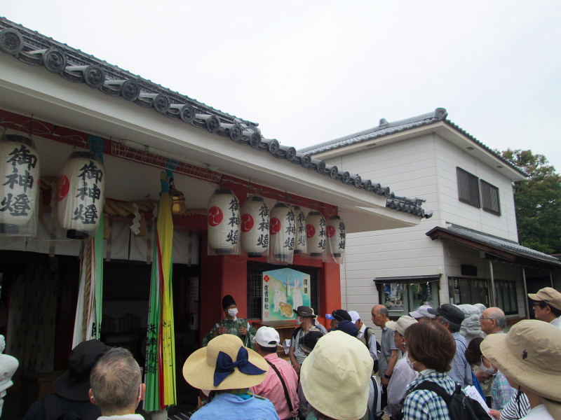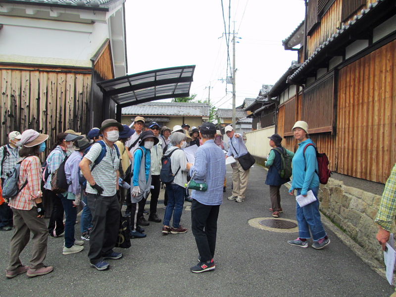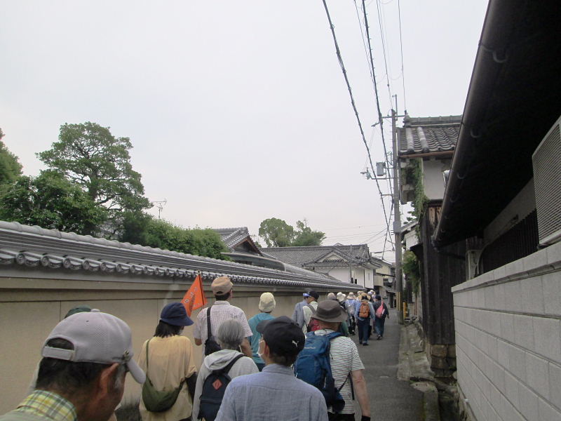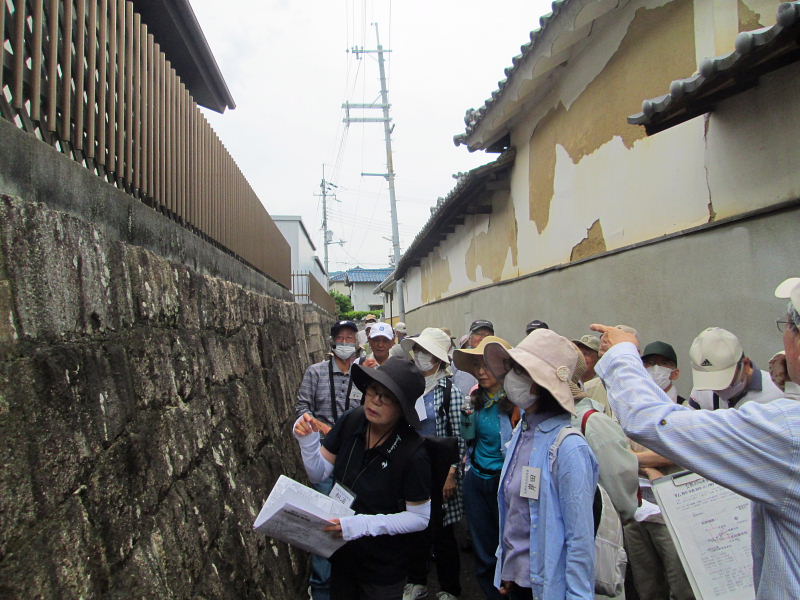 | 日時 : 2023年6月10日(土)午前9時 青年の家玄関口集合 参加者 35名(会員30名) 行程 : 青年の家〜原田織機工場跡〜住吉神社御旅所〜北田家住宅〜 住吉神社〜山野酒造〜光通寺〜無量光寺〜想善寺〜私部城跡 徒歩 約5km 12時解散 |