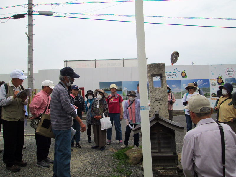 | 梅雨本番の不順な天候が続いていましたが、当日は雨の心配もなく曇り空のまずまずのウォーク日和となり、早朝より沢山の参加者が青年の家の玄関口に集合された。 村田会長の挨拶、「早朝より沢山の方に参加頂き有難うございます。本日は、地元にお住いの「吉岡さんと青山さん」のご案内で私部の町中を隈なく歩く予定です。手元の私部地区の地図とレジメをご覧ください。昭和30年〜40年頃の商店街の案内図が付いていますが、実際にはこの図よりも多く、100軒近くのお店が軒を連ねて賑わっていたそうです。最初に歩きます山根街道沿いには500m位の範囲の中に30数店舗があったようです。また、現在も元気な石橋も捜してみましょう。それでは、お二人の案内で私部地区を楽しく歩きたいと思いますので、宜しくお願いします」で始まり、早速に青年の家を出発した。 青年の家から直ぐ山根街道に出て、地元を知り尽くしているお二人より、子供の頃の懐かしい話や思い出話を取り交ぜながら、住吉神社の御旅所〜昔の交野小学校〜北田家住宅〜札場の辻〜住吉神社〜工事中のみらい学園〜山野酒造〜市場橋〜光通寺〜無量光寺〜想善寺〜私部城跡まで、周辺の史跡・遺跡の解説などを聞きながらゆっくりと歩いてきました。 当日の参加者は「広報かたの」などで事前に見られた方を含めて、総勢35名(会員30名)の元気な皆さんでした。参加された会員の30名の中、16名が昨年・今年で新しく入会された方でした。 吉岡さんの楽しい思い出話にうなずいたり、時に笑顔が見え、参加された皆さんは、私部の町をゆっくりと楽しまれたようです。また、青山さんからは、いろいろと研究された寺社や遺跡について詳しくお話し頂き、色々な歴史があることがお分かり頂けたことと思います。 「今日は私部の町をゆっくりと歩き本当に楽しい一日でした。御旅所や代官屋敷など、始めて訪れ、普段歩くことのないところまで案内頂き大変良かった。また、昔は、沢山のお店があったこと等もお聞きして本当に驚きです」と言われたことが印象に残りました。 ※ホームページに記載するに当たり、吉岡さん、青山さんさんより事前にいただいたレジュメや資料などを参考にさせて頂きました。記して感謝申し上げます。 |