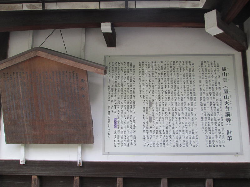| 蘆山寺(ろざんじ) 天台園浄宗の本山の寺院。本尊は阿弥陀三尊。 紫式部の邸宅跡として知られる。 元三大師堂(如意輪観音を安置)は洛陽三十三所観音霊場32番札所。 蘆山寺境内の東側に、御土居の一部が約50m残り実際に登って見学できる。 |