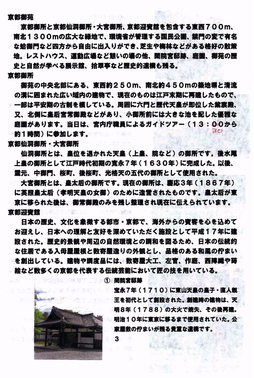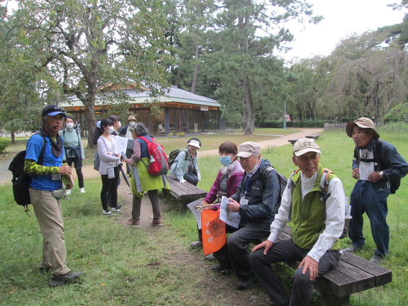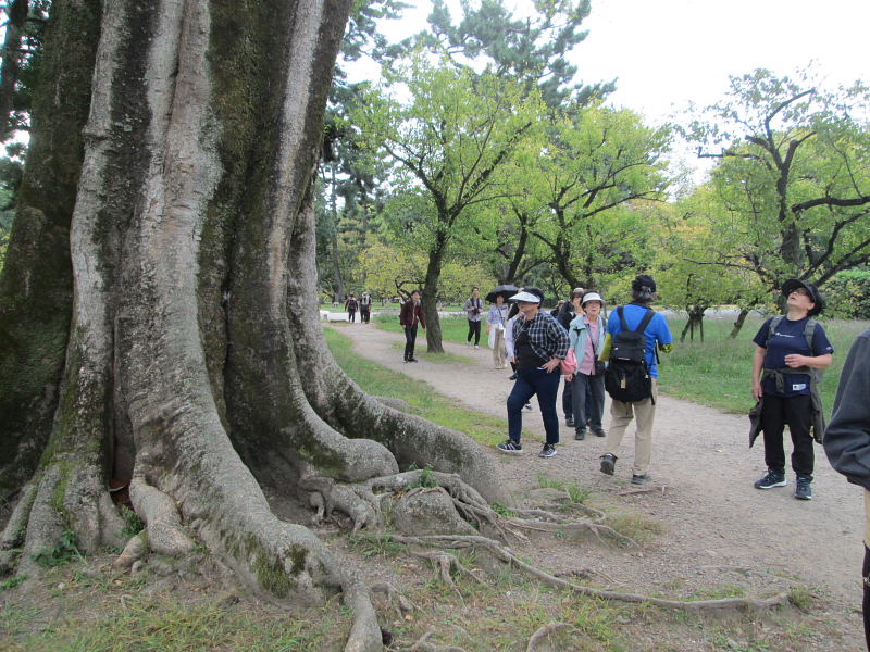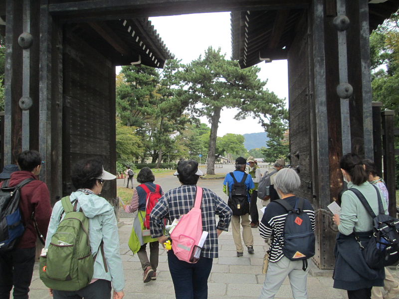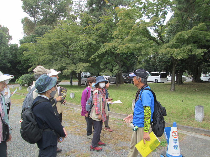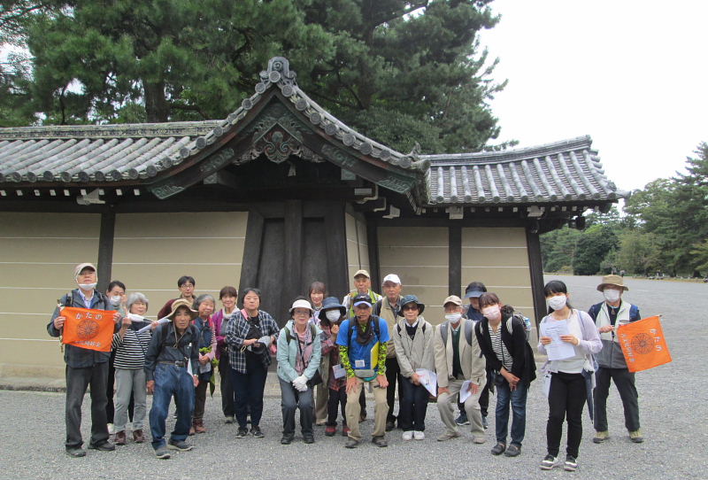 | 2023年10月14日(土)、当日朝は冷え込み曇り空、午後は雨模様の予報でしたが、幸い雨に遭うこともなく、盛岡博氏の案内で、「京都御苑と御土居巡り」京都御苑周辺をゆっくりと探訪して来ました。 交野市駅に定刻の9時前には元気なメンバーが続々と集合された。午後の天候が危ぶまれた為、当初予定の「西ノ京原町の御土居」は割愛して、直接、京都御苑周辺史跡などを巡る事となり、9時15分発の京阪電車に乗車、枚方市駅で乗り換え→出町柳駅で下車。 案内の盛岡さんは、この日の為に何度も下見され、交通機関の乗り換え、昼食場所・トイレ休憩の場所を確認された。事前に、閑院宮邸跡・展示室の案内を職員さんにお願いされ、御所の拝観時刻などを決め注意点を把握されたり、また参加者に分かりやすいようにと、カラー刷りのレジメを準備された。本当に有り難いことです。感謝、感謝です。 当初予定の行程を逆順に、先ずは蘆山寺へ案内された。豊臣秀吉が築造した「御土居」の現存する史跡のうち9ヶ所が国の史跡として指定されている。今回のウォークは、9ヶ所のうち3月に歩けなかった2ヶ所を巡る予定でしたが、「西ノ京原町の御土居」は割愛して、蘆山寺内の「御土居」を見学。1ヶ所だけでしたが、御土居に登りその凄さの一端が実感できました。 次に、京都御苑の梨木神社の染殿井等を見学後、御苑の南へと移動。閑院宮邸跡・展示室で職員さんより詳しく説明を受け、拾翠邸、出水の小川、蛤御門を廻り、中立売休憩所付近で昼食後、「京都御所拝観」に久しぶりに感動。参加された皆さんも、「京都御所が拝観できたことや初めて見学する場所も多く、大変良い勉強ができました」と大好評でした。 今回、企画立案して頂き、当日はリーダーとして引率・案内役の盛岡さんを始め、お世話役の方々、参加くださいました皆さんのお陰と感謝申し上げます。 ホームページに掲載するにあたり、講師の盛岡さんが研究・作成されたレジメ等を頂戴しましたこと、記して感謝申し上げます。 ※参考資料 京都御苑・京都御所などのホームぺージや御土居に関するWEB記事等を 参考にさせていただきました。記して感謝申し上げます。 |
