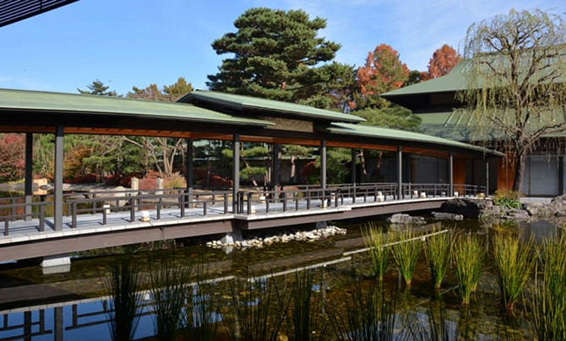 | 日本の歴史、文化を象徴する都市・京都で、海外からの賓客を心を込めてお迎えし、日本への理解と友好を深めていただく施設として平成17年に建設された。歴史的景観や周辺の自然環境との調和を図るため、日本の伝統的な住居である入母屋屋根と数寄屋造りの外観とし、品格のある和風の佇まいを創出している。建物や調度品には、数寄屋大工、左官、作庭、西陣織や蒔絵など数多くの京都を代表する伝統芸能において匠の技を用いている。 |