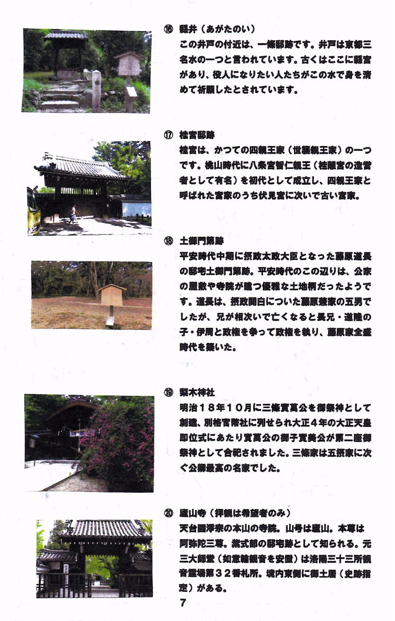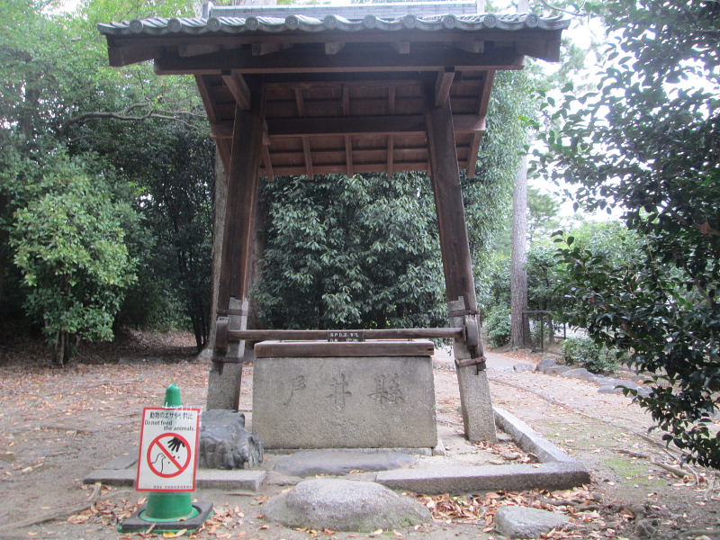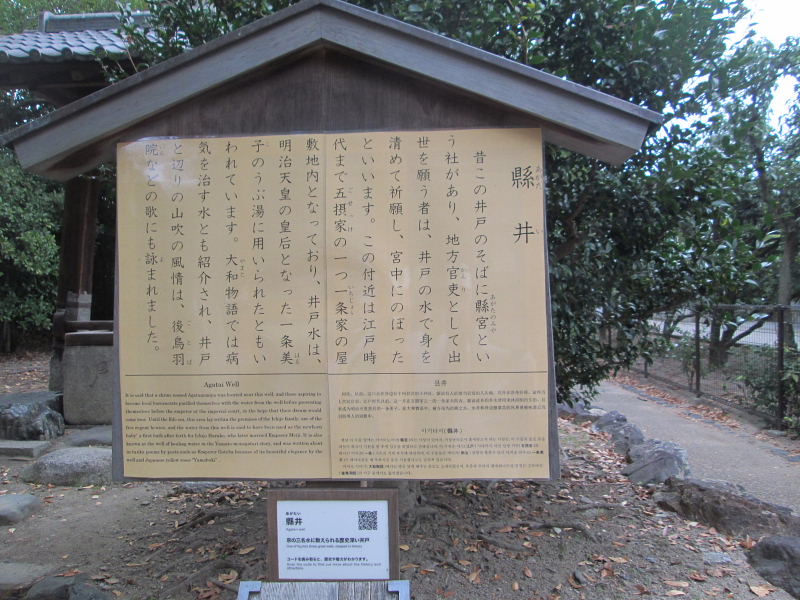 | この井戸の付近は、一条邸跡です。井戸は京都三名水の一つと言われています。古くはここに縣宮があり、役人になりたい人たちがこの水で身を清めて祈願したとされています。 |
