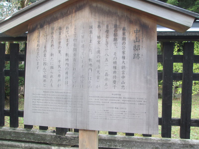 ![]() 明治天皇誕生の地・右奥に「祐井の井戸」が見える |