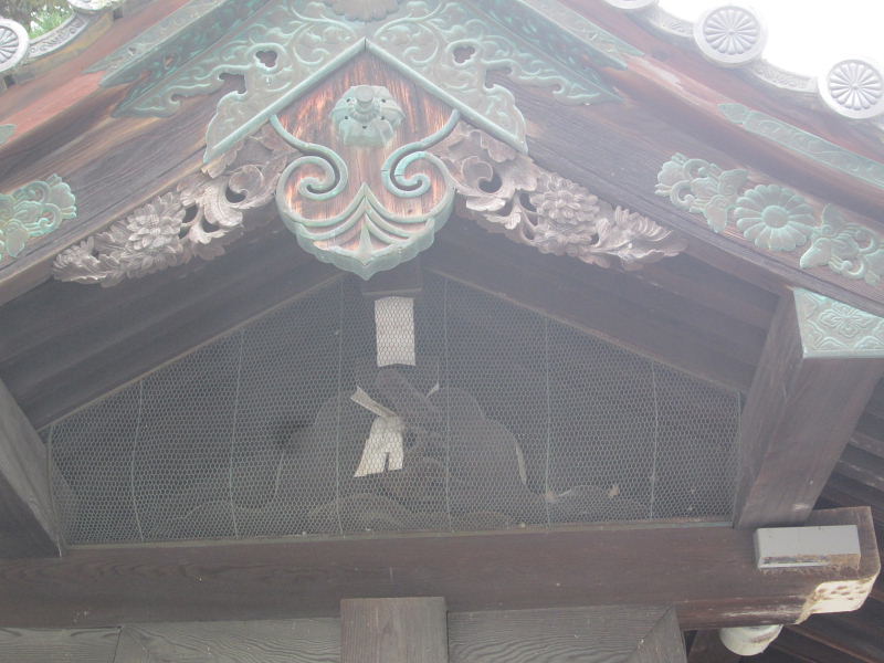 ![]() 昔、夜な夜な抜け出しては、御所や市中の人々にいたずらをするため、 御幣を担いだ猿が金網の中に閉じ込められている。 |