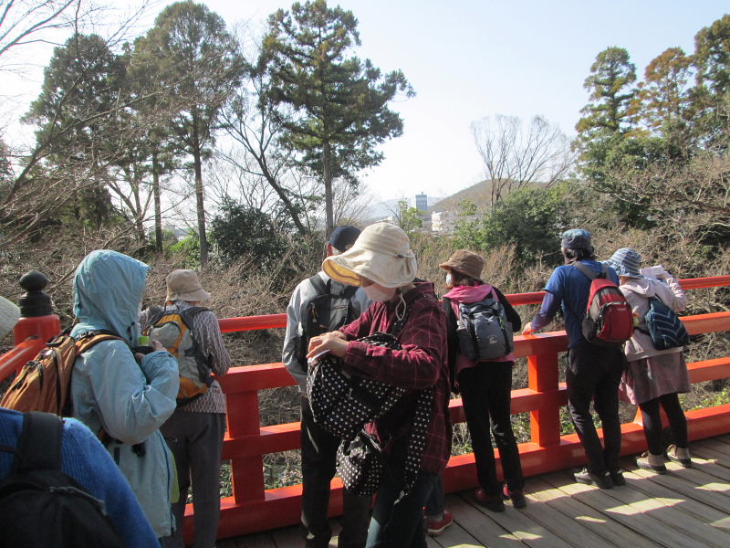 | 2023年3月11日(土)春らしい温暖な天候に恵まれ、盛岡博氏の案内で、「京都の御土居巡りと北野天満宮観梅」周辺をゆっくりと探訪して来ました。 交野市駅に定刻の9時前には元気なメンバーが続々と集合された。9時7分発の京阪電車に乗車、枚方市駅で乗り換え→丹波橋駅近鉄・地下鉄と乗り継いで→京都市営地下鉄「北大路駅」で下車。京都市営バスに乗り換え、堀川通を北へ、「加茂川中学前」で下車。バス停前が1番の御土居(加茂川中学校前)。御土居巡りは、ここから始まりました。 盛岡さんはこの日の為に何度も下見され、交通機関の乗り換え、昼食場所・トイレ休憩の場所を確認され、また、お知り合いの北野天満宮の権宮司さんには境内での見学案内をお願いされたり、参加者に分かりやすいようにと、カラー刷りのレジメを準備された。本当に有り難いことです。感謝、感謝です。 豊臣秀吉が築造した「御土居」の現存する史跡のうち9ヶ所が国の史跡として指定されている。今回のウォークは、9ヶ所のうち何と7ヶ所も歩いて来ました。次から次へと、現れる巨大な土塁と堀に驚くとともに、江戸時代にはその機能を失った後も、良くぞ史跡として残されたことに感動の連続でした。 また、ブラタモリが訪れたという「光悦堂前の御土居」に入り小休憩が取れるなんて、夢にも思っていませんでした。実際に歩いて、登ってこそ御土居の凄さが実感できる古い歴史を肌で感じた、楽しい歴史ウォークでした。 最後に訪れた「北野天満宮」では、権禰宜様に北野天満宮の境内の主な建物や歴史をご案内頂きました。心より感謝申し上げます。 これまでコロナ禍の為、中止続きでしたが、今回3年ぶりに、「京都の御土居巡りと北野天満宮観梅」が実施できましたこと、本当に嬉しく思います。企画立案して頂き、当日はリーダーとして引率・案内役の盛田さんを始め、お世話役の方々、参加くださいました皆さんのお陰と感謝申し上げます。 ホームページに掲載するにあたり、講師の盛岡さんが研究・作成されたレジメ等を頂戴しましたこと、記して感謝申し上げます。 ※参考資料 北野天満宮のホームぺージや御土居に関するWEB記事等を 参考にさせていただきました。記して感謝申し上げます。 |