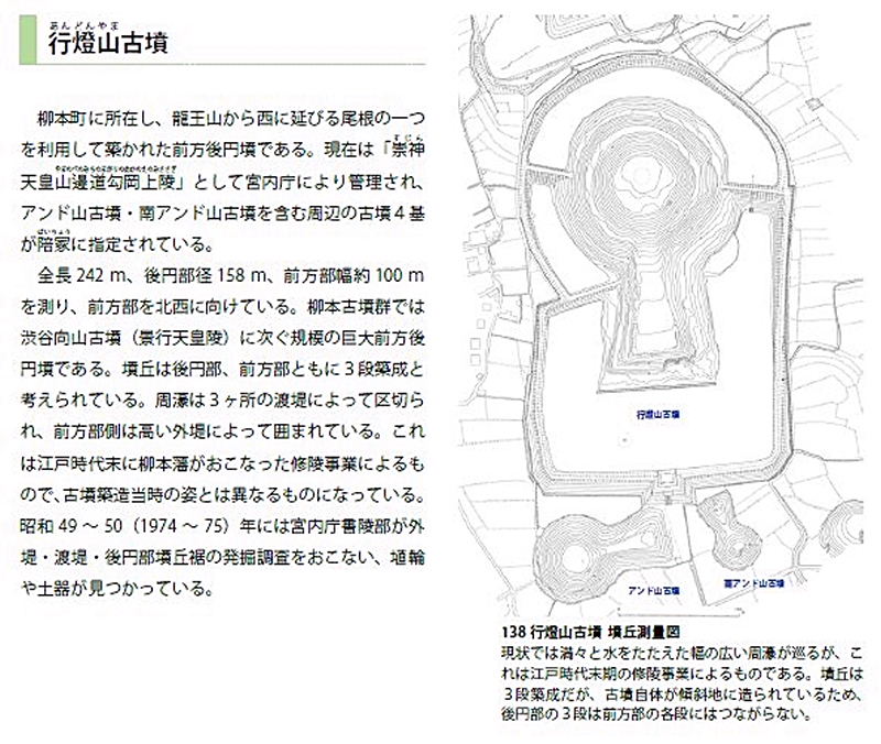 | 柳本古墳群は天理市柳本町・渋谷町一帯に分布する古墳群で、行燈山古墳(崇神天皇陵)と渋谷向山古墳(景行天皇陵)の2基の巨大古墳を含む。 奈良盆地南東部の前期古墳群は、古墳時代前期(3〜4世紀)に形成され、存続期間は重複するも、概ね、纏向古墳群、大和古墳群、柳本古墳群の順に築造が進んだと知られる。 山辺の道を歩きながら古墳を確認しよう。 |