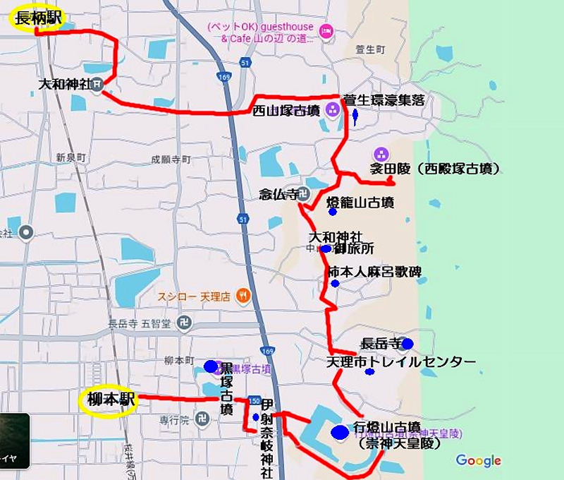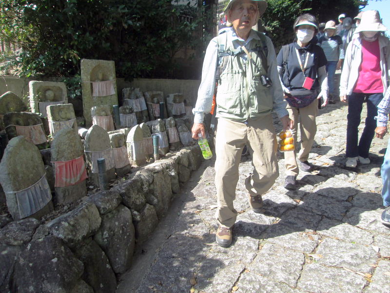 | 2024年10/12(土)、天候 晴。奈良 気温25。9度を記録。 JR河内磐船駅前に8時50分元気な22名が集合、盛岡氏より列車の乗り換えなどの説明を受けて、9時4分発の列車に乗車、木津駅・奈良駅を経て長柄駅に10時50分頃着(17分程延着)。駅前の観光案内看板前で、村田会長の挨拶と盛岡部長の当日のウォーク案内を受けて「山辺の道」へと出発。 駅前から先ず、「日本最古の神社・大和神社(おおやまとじんじゃ)」へ立ち寄りその後、天理市の名物「刀根早生柿」が道の両側に、たわわに実った柿畑の間を約600m東へ歩き、萱生環濠集落に到着。白い雲が浮かび青々とした山並みの裾野を南北に走る古道「山辺の道」をゆっくりと散策、雄大な景色に感動し古代の歴史と面影を楽しんで来ました。 ![]() ここ山辺の道は、「我国最古の古道の名残をとどめ、千幾百年来のさまざまのドラマを秘めて、今に生きる私たちを歩かせる。」と紹介されており、当日には沢山の観光客で大賑わいでした。 今回の企画は、案内人の盛岡博氏が、天理市の石上神宮から桜井市の金屋までの約16kmの「山辺の道」を3回に分けて歩くもので、第2回目として実施されました。最後の回は、来年の上期に予定されています。 当日は、午後には夏日近くまで気温が上昇、皆さん、汗ばみながらも柳本駅まで元気に歩き通されました。 参加された皆さんから「これまで山辺の道は何度も歩きましたが、説明を受けながら巡ると分かりやすくていろいろと興味が出て一日楽しく過ごせて良かったです。」「初めてお会いした方とも親しく話が出来、今後の行事参加が楽しみです!」と大好評でした。 ※案内役の盛岡さんには下見や事前準備など、また、資料など沢山提供頂き 有難うございました。当日、頂いたレジュメなどを参考にさせて頂きました。 また、奈良県・天理市のWEB記事などを参考にさせて戴きました。 記して感謝申し上げます。 |