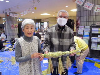 | 参加された皆さん、見事に仕上がったしめ縄を手に、 「立派なしめ縄が出来て嬉しいです、有難うございました。 これで、お正月が迎えられます!」と喜んでお帰りいただきました。 |