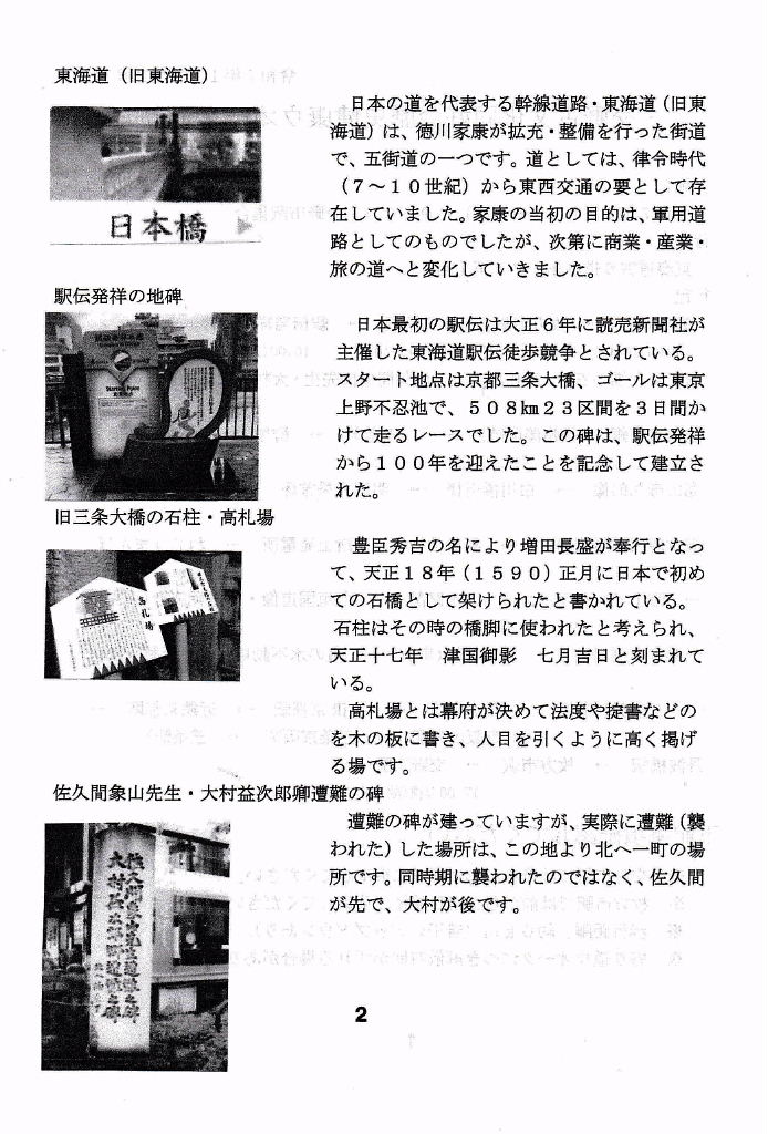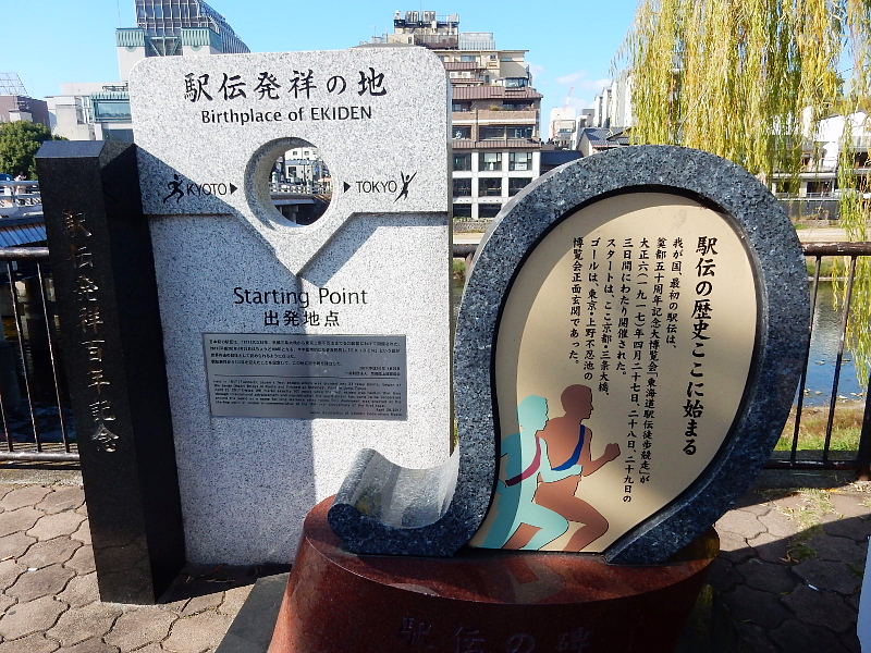 スタート地点は京都三条大橋、ゴールは東京上野不忍池で、5 0 8km2 3区間を3日間かけて走るレースでした。この碑は、駅伝発祥から100年を迎えたことを記念して建立された。 |