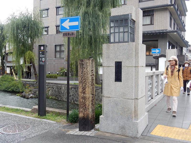 | 京都における現存最古の道標。碑文は、【北】三条通白川橋、【東】是よりひだりちおんゐんぎおん きよ水みち、【南】延宝六成午二月吉日、京都為無案内旅人立之