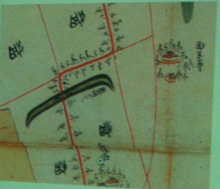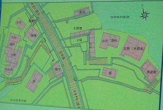 ←「江州蒲生郡豊浦村 与須田村山諭立会絵図」 (元禄8年) 惣構どてが描かれている。 「指上申西霊寺建立並寺地之」に 信長公の頃に 惣郭之土堤を開いた と書かれている。 (江戸中期) 惣構地内の道路は、鍵形路が分布している。 |