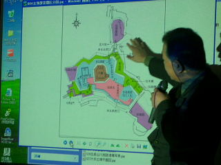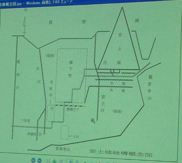 | 平成元年から20年計画で発掘調査中の安土城の研究成果を 沢山の資料と映写画像を交えて、丁寧にきめ細かく講演いただきました。 |