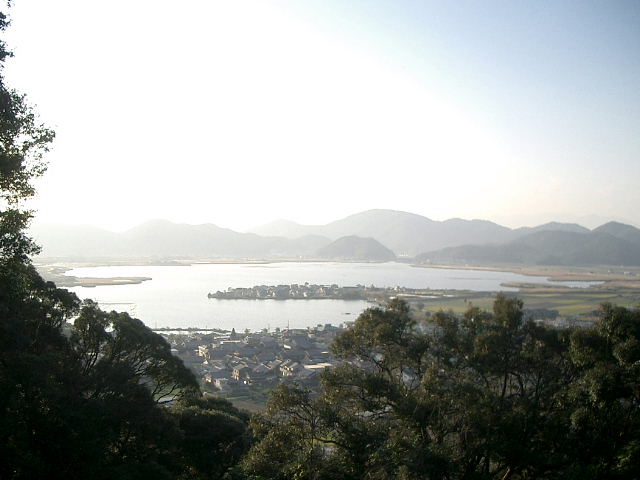 ![]() ハ見寺跡より、西の湖方面 |
