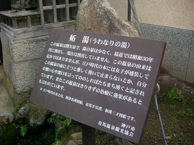 有馬温泉の守護神として名高い湯泉神社の縁起によれば、泉源を最初に発見したのは、神代の昔、大已貴命(おおなむちのみこと)と少彦名命(すくなひこなのみこと)の二柱の神であったと記されています。この二神が有馬を訪れた時、三羽の傷ついたカラスが水たまりで水浴していました、ところが数日でその傷が治っており、その水たまりが温泉であったと伝えられています。 |