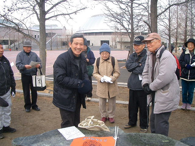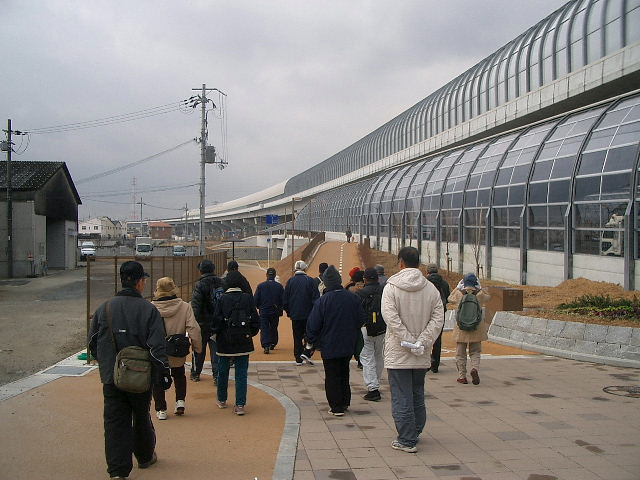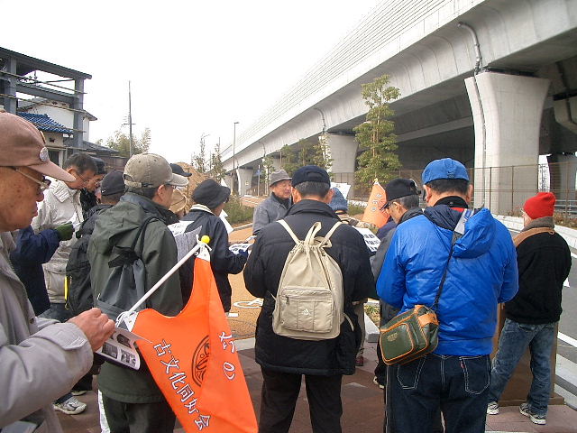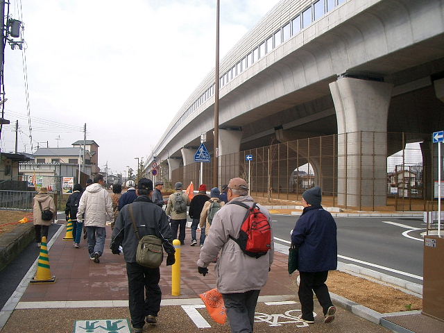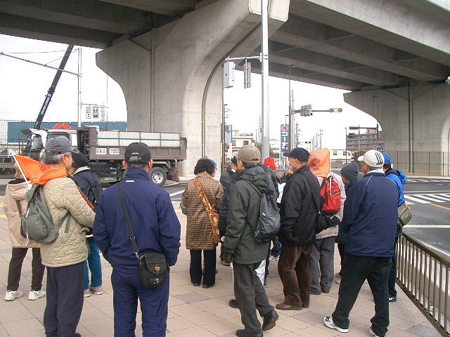 | 2011年2/12(土)、天候晴れのち曇。いきいきランド広場に集合、午前10時出発。 中会長の挨拶の後、初歩きで歩いた第二京阪国道の側道を交野ドームから星田の平池遺跡まで、道中、高尾秀司さんの側道周辺の遺跡の解説を聞きながらゆっくりと歩いてきました。本日の参加者は元気な総勢20名の皆さんでした。 心配された天候も時々冷たい風が吹いたが昼までは先ず先ずのウォーク日和であった。解散後ドームまでの道程で小雪交じりの霙に遭った。皆さんお疲れさまでした。 |