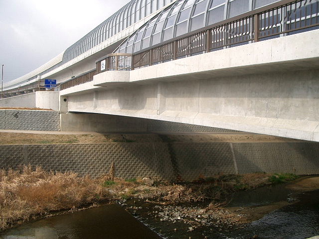 ![]() 橋脚の向こうに見えるのは、槃若寺 |