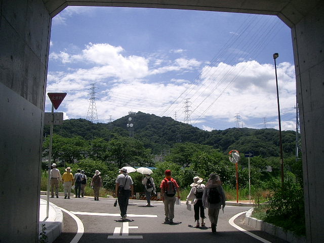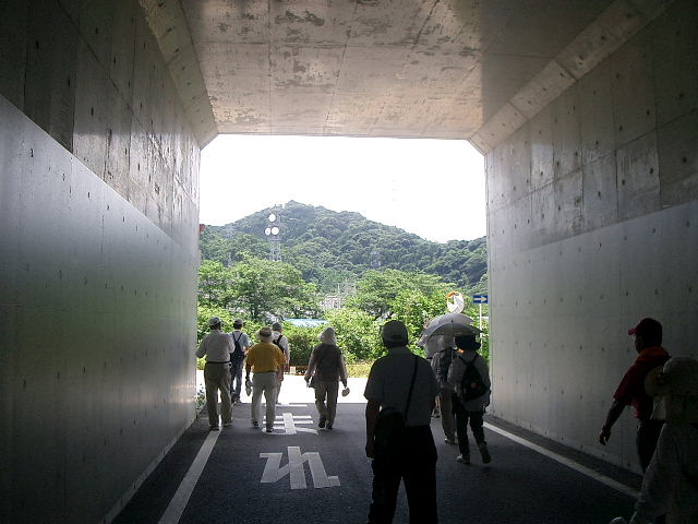 額縁のトンネルをでると交野山が目の前に |