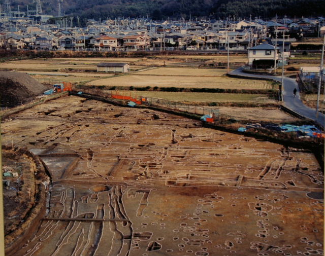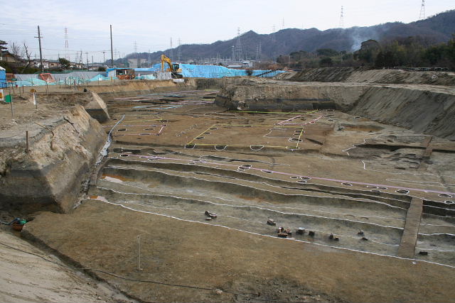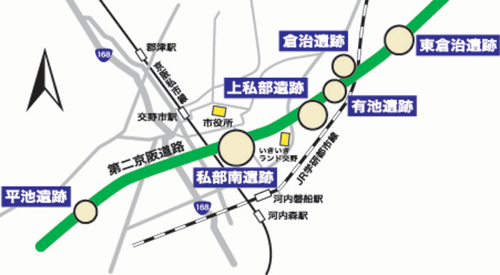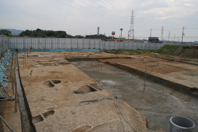 いきいきランド交野の北側と、京阪電車側の2か所を中心として紀元前6世紀ごろ、弥生時代前期と呼ばれる時期の土器や住居跡が見つかりました。