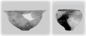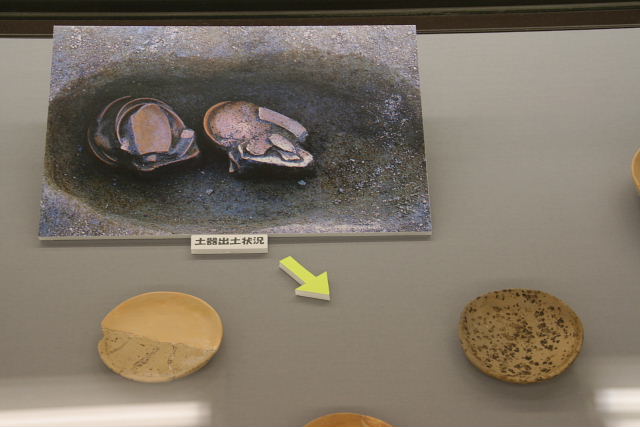 土師器の中には、当時国内で作られた土器の底は丸いものが主流であったにもかかわらず、右の写真のように植木鉢のように底が平に形作られた土器も含まれています。