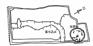 その中には周囲を濠で囲った、大きな母屋と、幾つかの脇屋からなる大型の屋敷があり、これが集落の中心だったと考えられます。おそらくこの地の土豪の屋敷だったと考えられます。 |