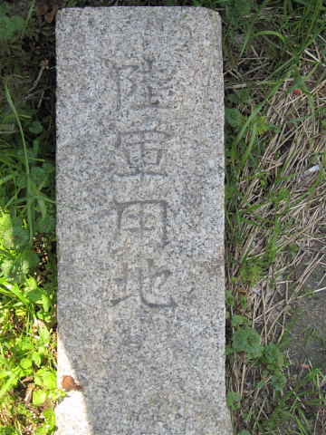 フェンスの外側に「陸軍用地」石標を確認 |