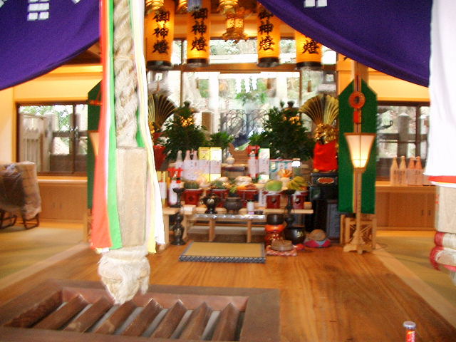 ![]() 拝殿の奥に、 ご神体の影向石(ようごうせき)が拝めます |