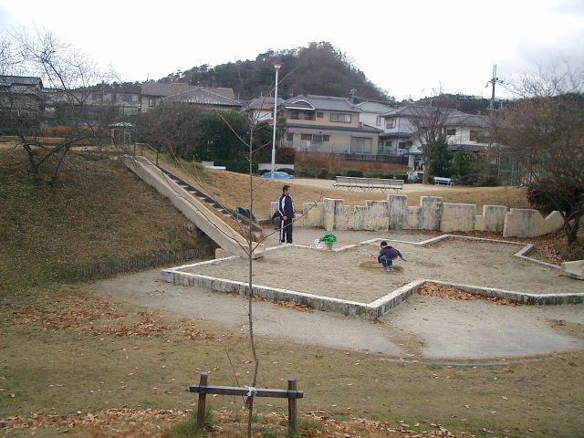 | 妙見東住宅の中央公園 現在の状況は、円墳か前方後円墳かと見間違うほど良く出来た高台が造られている。 |