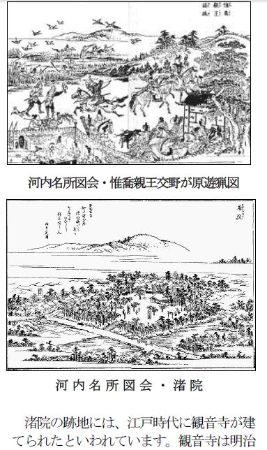 ![]() 河内名所図会 渚の院 ![]() 河内名所図会・惟喬親王交野が原遊猟図 |