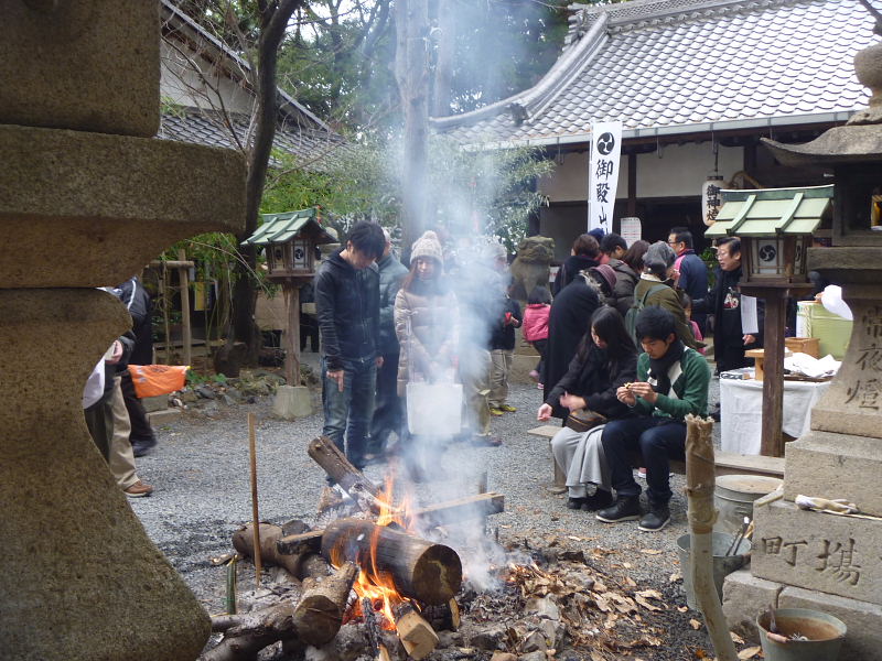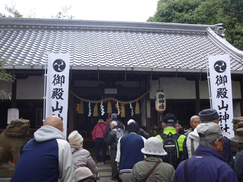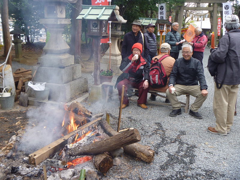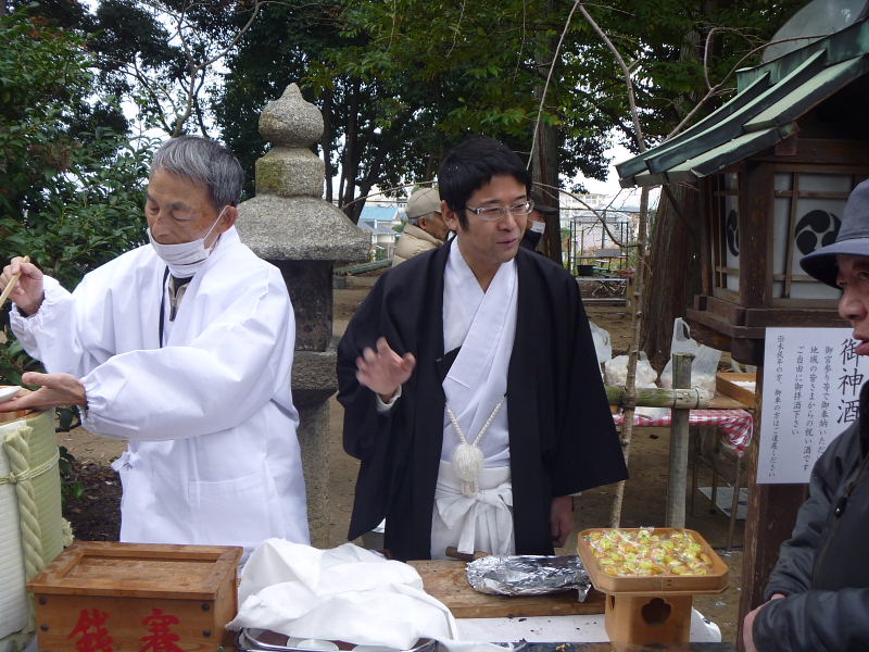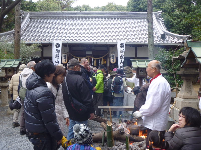 ![]() 御殿山神社では、御神酒や焼芋が振舞われた |