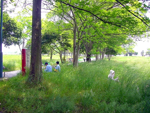 平城京朱雀門前の木立の中で昼食 |