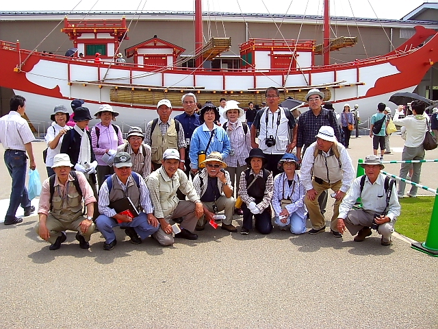 遣唐使船をバックに記念撮影 |