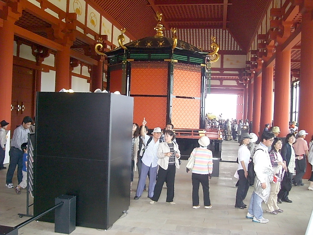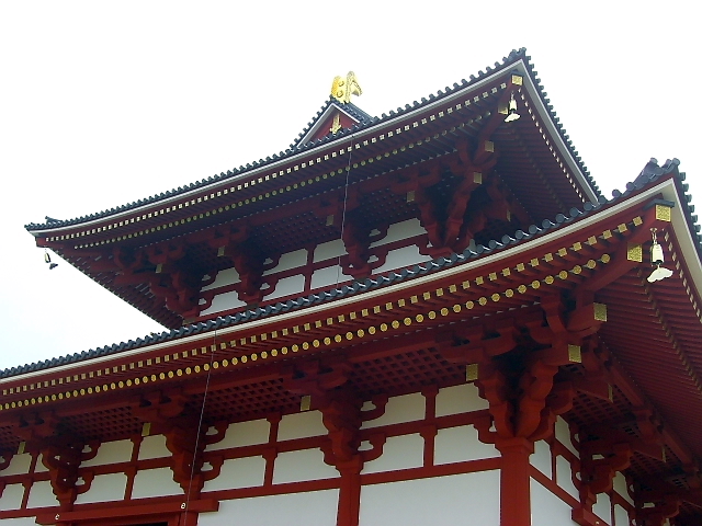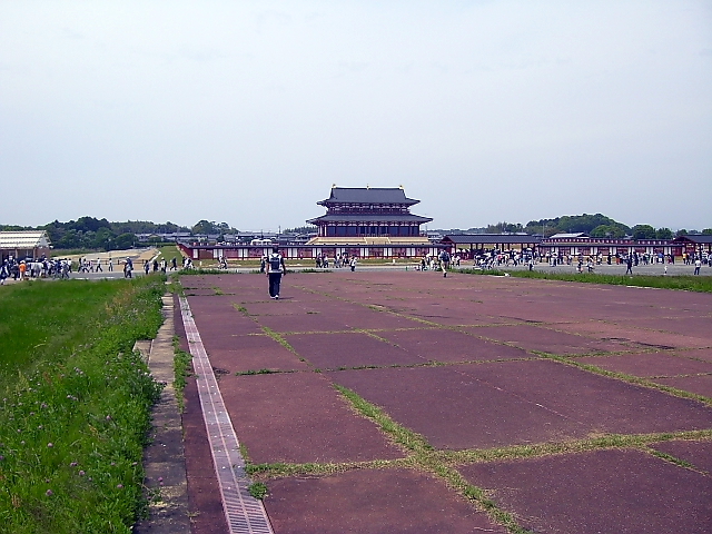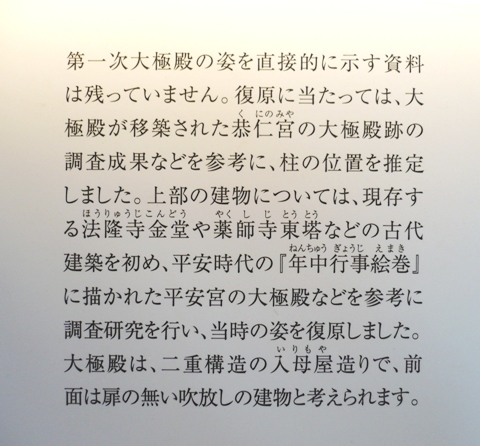 高さ27m、正面幅44m、側面幅20m、直径70cmの朱色の柱44本、 屋根瓦9万7000枚を使った平城宮最大の宮殿 |