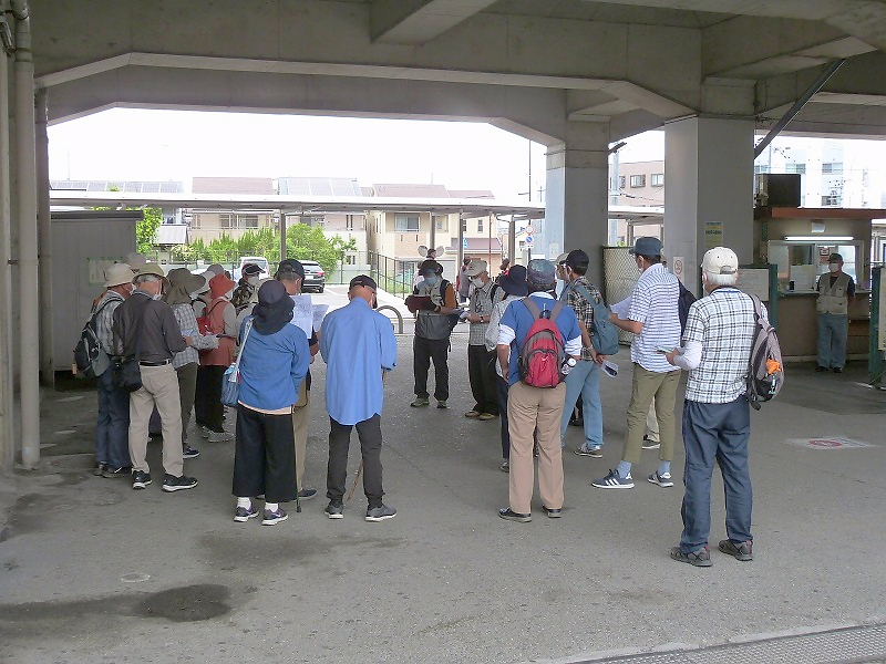 | 星田駅バスロータリー前で駅北開発の様子を説明 | |||||||