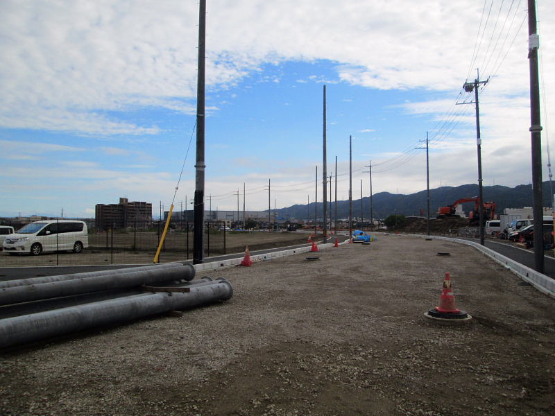 ![]() 新設中の星田北中央線(10月〜11月頃に完成予定) 東高野街道沿いに建てられていた「一里塚碑」は、この新設の星田北中央線と 旧東高野街道と重なる200m内の道路沿いに移設予定。 |
