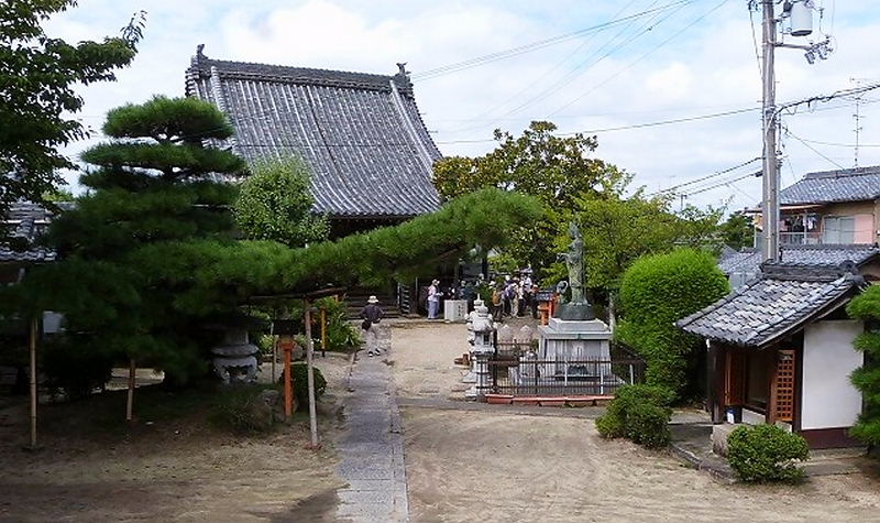 ![]() 弘法大師は宝亀5年(774)讃岐の国(善通寺市)で生まれる。父は地方官吏の佐伯直公善通、母は中央の名族阿刀氏の女。幼名真魚といい幼いころから儒教、文学、歴史などを学んだと云われ、15歳で、{延暦8年(789)}地方官吏養成所である国学に入学、3年後(792年)都にのぼって国の官吏養成機関である大学に進んだが途中で仏道に目覚め出家する。修行の後、延暦23年(804)(30歳)で遣唐使として唐の長安に赴き密教を学び、帰国後816年(弘仁7)高野山を開き密教の修行の道場とし、その後823年(弘仁14)嵯峨天皇から東寺を下賜され密教の根本道場とした。 この東寺と高野山を直結するのがこの星田を通る東高野街道である。また嵯峨天皇の弘仁2年(811)推古天皇が建てた長岡京・乙訓寺の別当となり、これを機会に近郷の霊場を訪ね、私市の獅子窟寺や星田にやつて来て貧しい農民達に現世利益の信仰を植え付けたとされる。 また東高野街道を行き来の際にも仏教を教え、その教えを受けた農民達あるいは子孫が弘法大師を慕い続け自分たちの身近に大師堂を建てその徳をしのび念じ続けてきたものと思われます。現在でも大師の命日にあたる4月21日には近隣のお世話番の人達が出て、お供えを供えてお参りをつづけております。 本日はその遺徳を偲び、又近隣の弘法大師に対する信仰の有りようを偲んでみたいと思います。 818(弘仁9)大災害があり堤防が決壊。821年(弘仁12)一人の若い僧と4人の童子をつれて、改修にあたり3ヵ月で完成したと云われる。 四国四県の八十八札所(霊場)に巡拝しながら修行の旅をする遍路。弘法大師とともに巡るという意味から常に遍路は「同行二人」である。締めくくりは大師の聖地高野山へ詣でる。 |