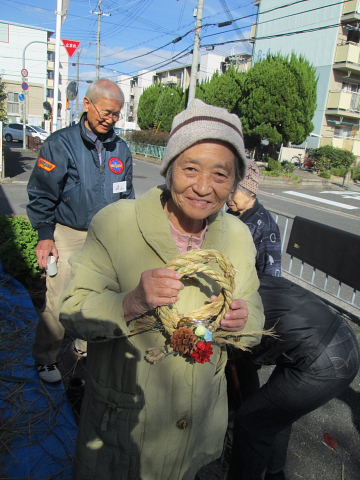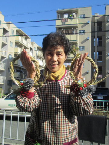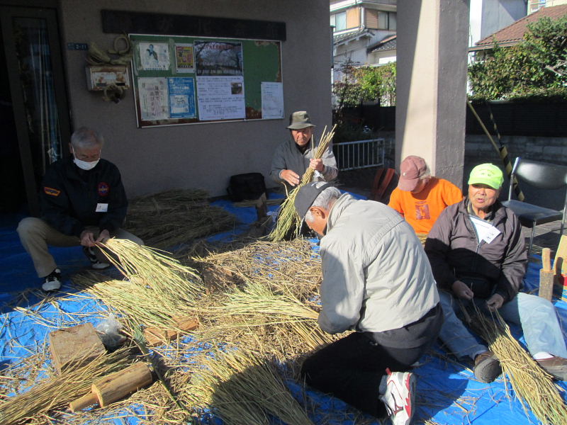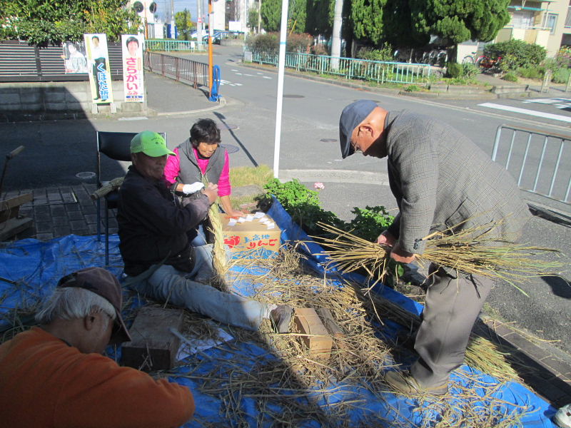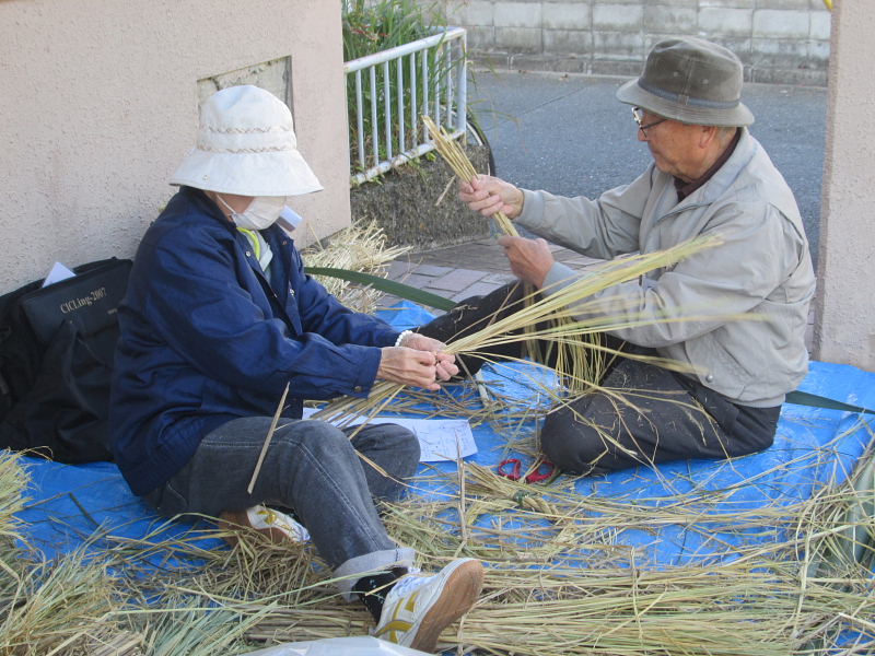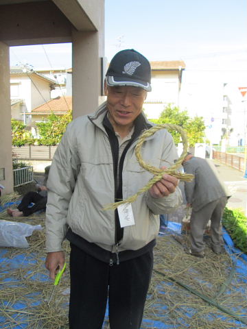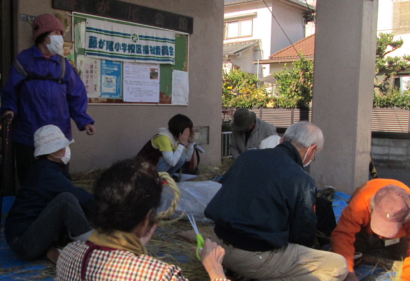 | 2016年12月2日(金)、午前10時から藤が尾小学校区福祉委員会主催の「しめ縄づくり」が藤が尾会館の玄関口いっぱいにシートを敷いて開催されました。 当日は好天に恵まれ寒さも和らぎ市民の方々が沢山参加され、正月の玄関先に飾るしめ縄や丸型しめ縄・リースを作られた。材料の藁は、毎年市民の方のご厚意で寄贈され、松ぼっくりや飾り物は福祉委員会の皆さんが用意されたものです。 講師・指導は、交野古文化同好会のスタッフ6名の有志の皆さん。早朝の9時30分に集合、藁のしぶとり、藁叩きなど準備万端。皆さん、早朝から本当にお疲れさまでした。 これまで長年、小野香さんをリーダーとしたグループの方々によって指導されてきましたが、昨年より引継ぎ、交野古文化同好会の行事の一つに加えて実施することになりました。 来年こそは良い年になりますようにと、皆さん楽しみながらの「しめ縄作り」でした。 |