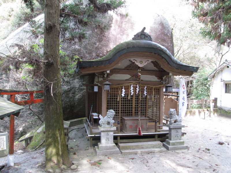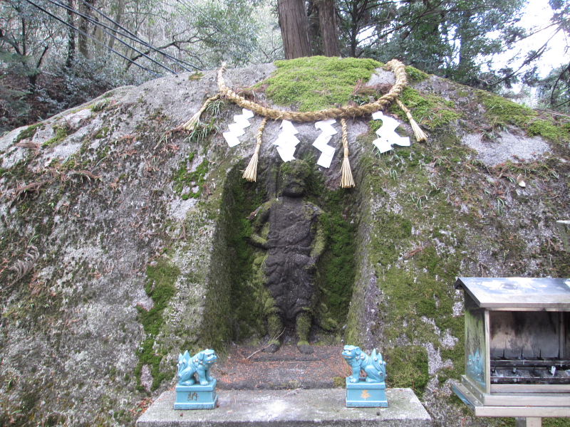 ![]() 鳥居をくぐると、不動明王が彫られ天文4年(1544)の銘があります |