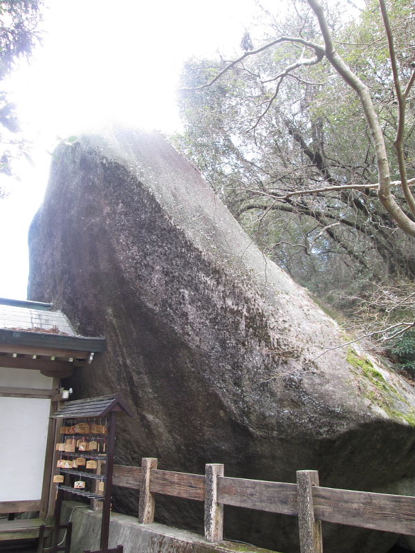 | 御神体は命の乗って来られた「天の磐船」といわれる高さ12メートル、 幅12メートルある船の形をして巨大な磐座(いわくら)です |