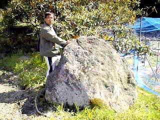 | 牛回しの石:昔、1月3日に農耕用の牛を連れてきて今年もまた1年、牛が健康でよく働きますようにと祈ってこの石の周りを何度も回ったと言う。 |