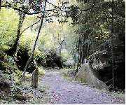 山裾の藪(神宮寺の宮跡)のある北から里のかけて、奈良時代に開元寺と言う大寺が建ち、その寺が鎌倉時代の頃に、交野山の山頂に寺を移し岩倉開元寺と名を変えたといわれており、この道は岩倉開元寺への参道であった。往時、沢山の僧やお参りする人々が通った道である。