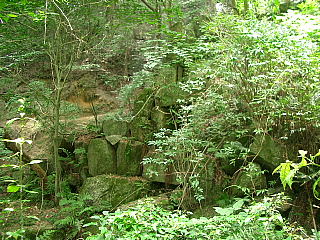 | 重いカメラを担いで地獄谷の石組みを撮影! 石組みで築かれている用水路は星田新池がつくられた 明治から昭和のはじめ頃に作られたもの思われる。 |