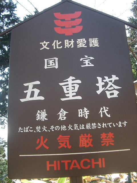 約1万坪の境内には国宝の五重塔が建つ。健保2年(1214)覚心が貞慶の一周忌供養の際に建立したもので後鳥羽天皇下賜の舎利を納めている。高さ17.7mと小さいが鎌倉時代唯一の遺構として貴重である。本瓦葺で昭和38年(1963)初層屋根に裳腰を付けて旧姿に復元、堂内に木造四天王立像(国重文)を祀る。