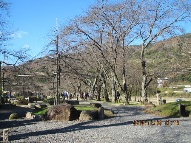 笠置いこいの館の前の駐車場にバスを駐車、