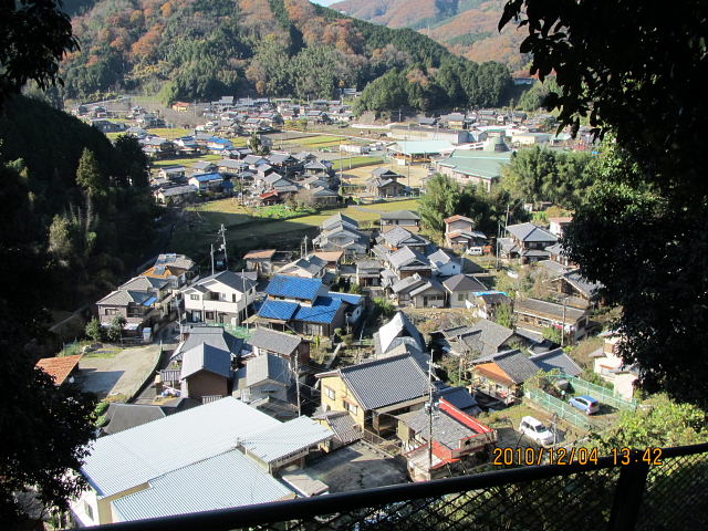 直ぐ眼下に笠置の町並 |