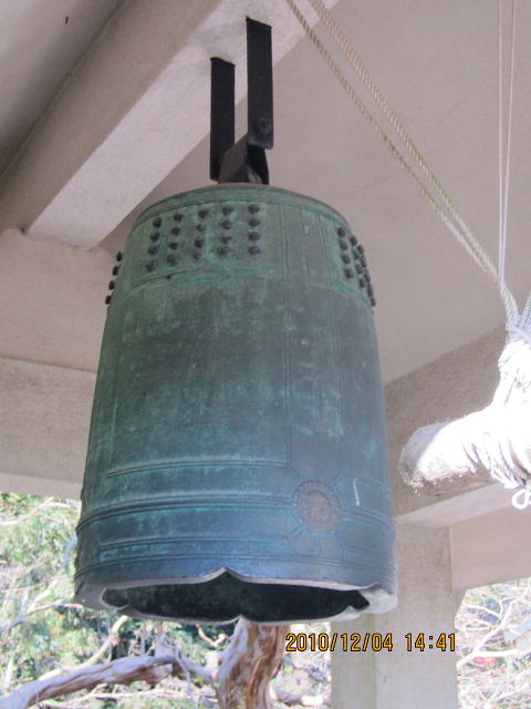 この鐘は口径六十七センチ、高さ百六十八、五センチ、その駒の爪の六ヶ所に深さ一センチの浅い切れ込みを造り、これによって六葉に擬えている点に特徴を持つ。