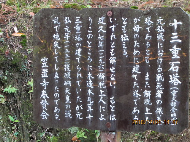 藤原道真など多くの人が笠置詣でに訪れた。