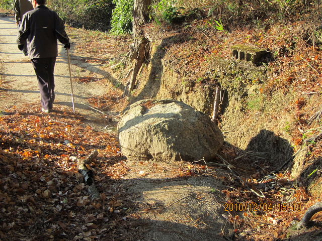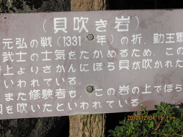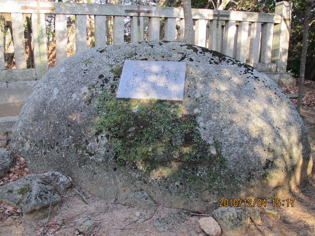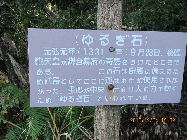 近くの名切石には元弘の役の戦死者の名を刻むが、安政の大地震で90度転がり、